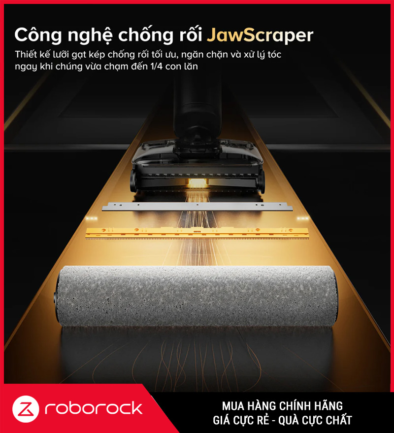 Một trong những vấn đề phổ biến khi vệ sinh là tóc và lông thú cưng quấn quanh chổi. Roborock F25 ACE Combo tích hợp công nghệ Jaw Scraper – hệ thống tự động gỡ tóc quấn, giúp bạn giảm thiểu việc phải vệ sinh lại chổi thủ công sau mỗi lần dọn dẹp. Nhờ đó, hiệu suất làm việc của máy luôn ổn định và tiết kiệm thời gian chăm sóc thiết bị.