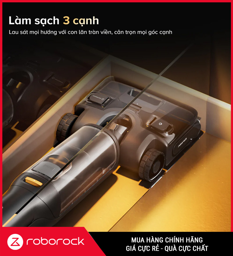 Khác biệt nổi bật ở F25 ACE Combo là con lăn lau sàn tràn viền, cho phép máy tiếp cận sát mép tường hơn và làm sạch hiệu quả đến 3 cạnh, thay vì chỉ tập trung ở giữa sàn như các máy thông thường. Nhờ thiết kế này, người dùng không cần lau lại thủ công các góc khuất, tiết kiệm thời gian và công sức đáng kể.