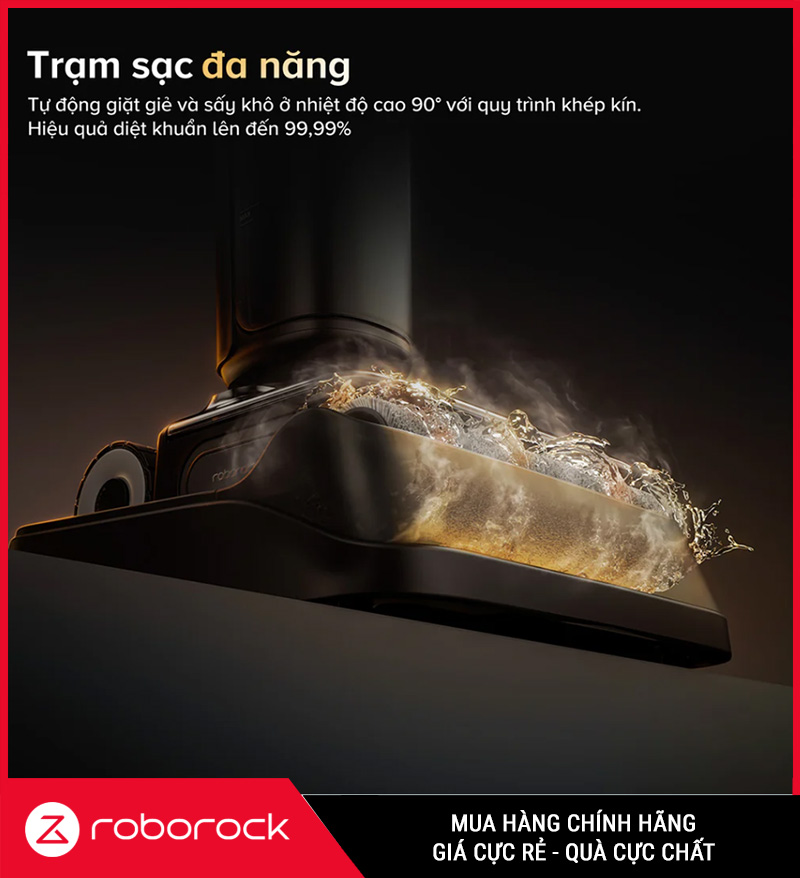 Roborock F25 ACE Combo đi kèm trạm sạc đa chức năng, không chỉ sạc pin mà còn giặt giẻ lau tự động, sấy khô bằng khí nóng và diệt khuẩn bằng tia UV – đảm bảo giẻ luôn sạch, khô ráo và khử mùi tối ưu sau mỗi lần dọn dẹp. Tính năng này giúp tiết kiệm công sức vệ sinh thủ công, đồng thời hạn chế vi khuẩn sinh sôi, bảo vệ sức khỏe gia đình.