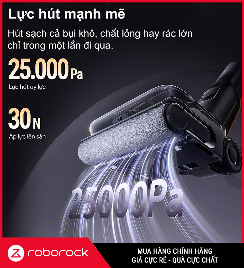Một trong những yếu tố tạo nên sức mạnh cho Roborock F25 ACE Pro chính là lực hút lên đến 25.000Pa – thuộc top đầu trong phân khúc máy hút lau cầm tay.