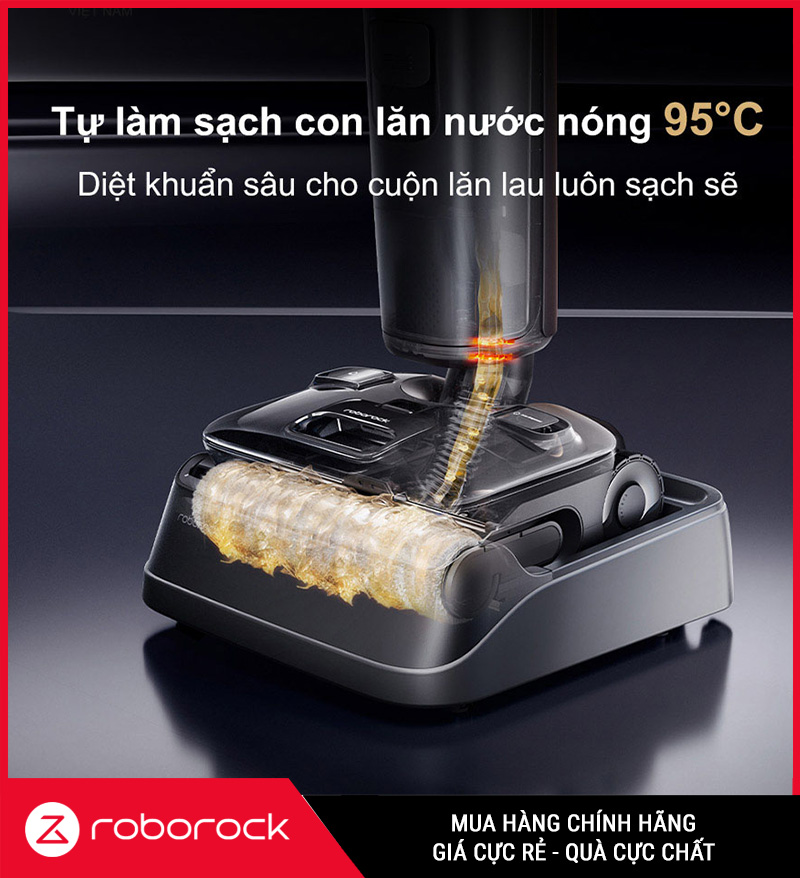 Một trong những điểm vượt trội giúp Roborock F25 ACE Pro khác biệt với các dòng máy hút lau thông thường chính là khả năng tự làm sạch con lăn kết hợp diệt khuẩn bằng hơi nước nóng 95°C.