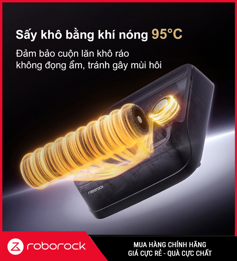 Sau khi con lăn được làm sạch bằng nước nóng, Roborock F25 ACE Pro sẽ tiếp tục bước thứ hai: sấy khô bằng khí nóng 95°C – một tính năng cao cấp thường chỉ có ở các dòng máy đắt tiền.
