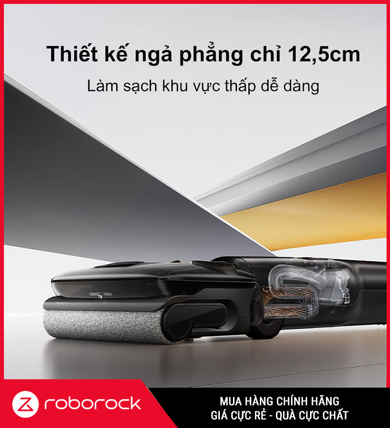 Một trong những điểm cộng lớn về thiết kế của Roborock F25 ACE Pro là khả năng gập phẳng thân máy chỉ còn 12,5cm – giúp người dùng dễ dàng làm sạch dưới các khu vực gầm thấp như: