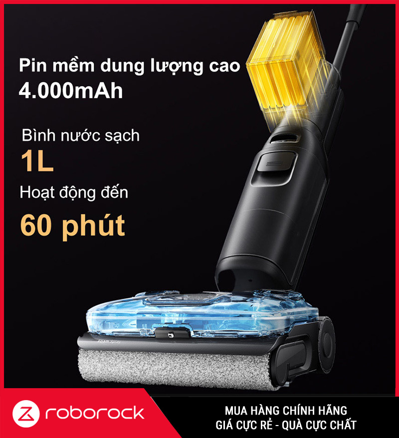 Dung lượng pin 4.000mAh – Làm sạch bền bỉ không gián đoạn
