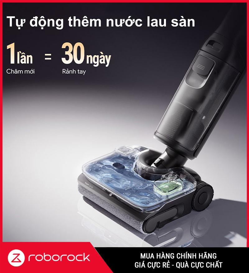 Roborock F25 ACE Pro không chỉ làm sạch mạnh mẽ mà còn tối ưu trải nghiệm sử dụng nhờ tính năng tự động pha nước lau và thiết kế công thái học: