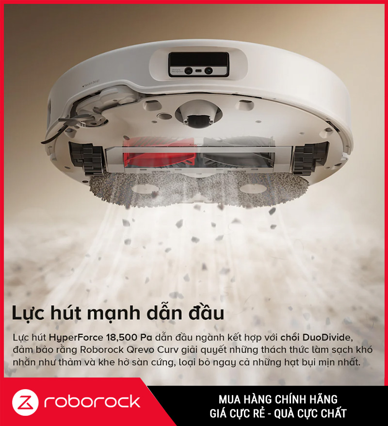 Roborock Q Revo Curv được trang bị công nghệ HyperForce® thế hệ mới, mang đến lực hút cực đại 18.500 Pa – mạnh hơn gấp nhiều lần so với thế hệ tiền nhiệm và phần lớn robot cùng phân khúc.