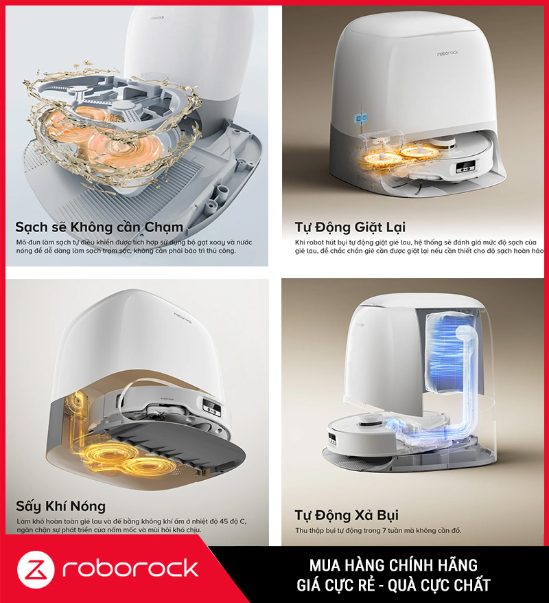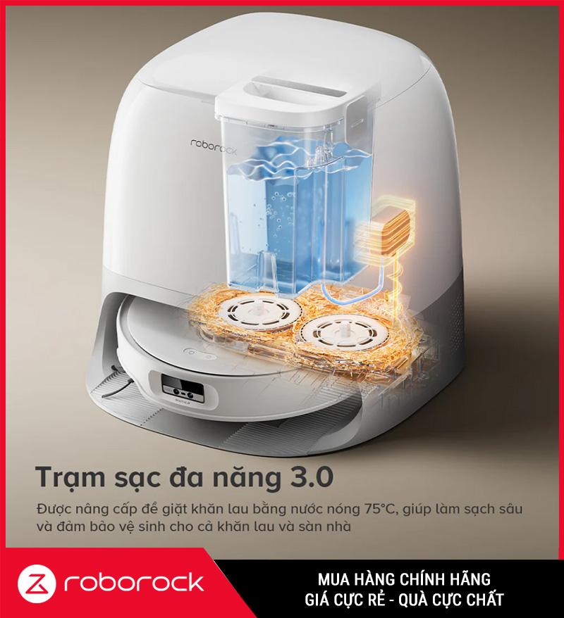 Robot sau khi lau nhà sẽ quay về trạm và được giặt khăn lau bằng nước nóng 75°C, giúp: