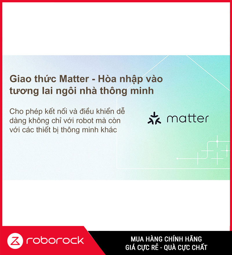 Roborock Q Revo Curv là một trong những robot đầu tiên hỗ trợ giao thức Matter – chuẩn kết nối mới giúp các thiết bị nhà thông minh liên kết mượt mà, ổn định và bảo mật hơn.
