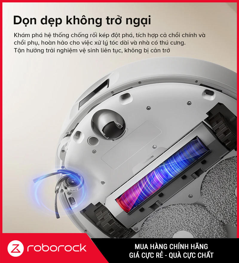 Vấn đề tóc rối kẹt vào chổi cuốn luôn là nỗi lo lớn đối với các robot hút bụi thông thường – đặc biệt là với nhà có thú cưng hoặc người tóc dài. Roborock Q Revo Curv đã giải quyết triệt để vấn đề này với hệ thống chống rối tóc kép đột phá.