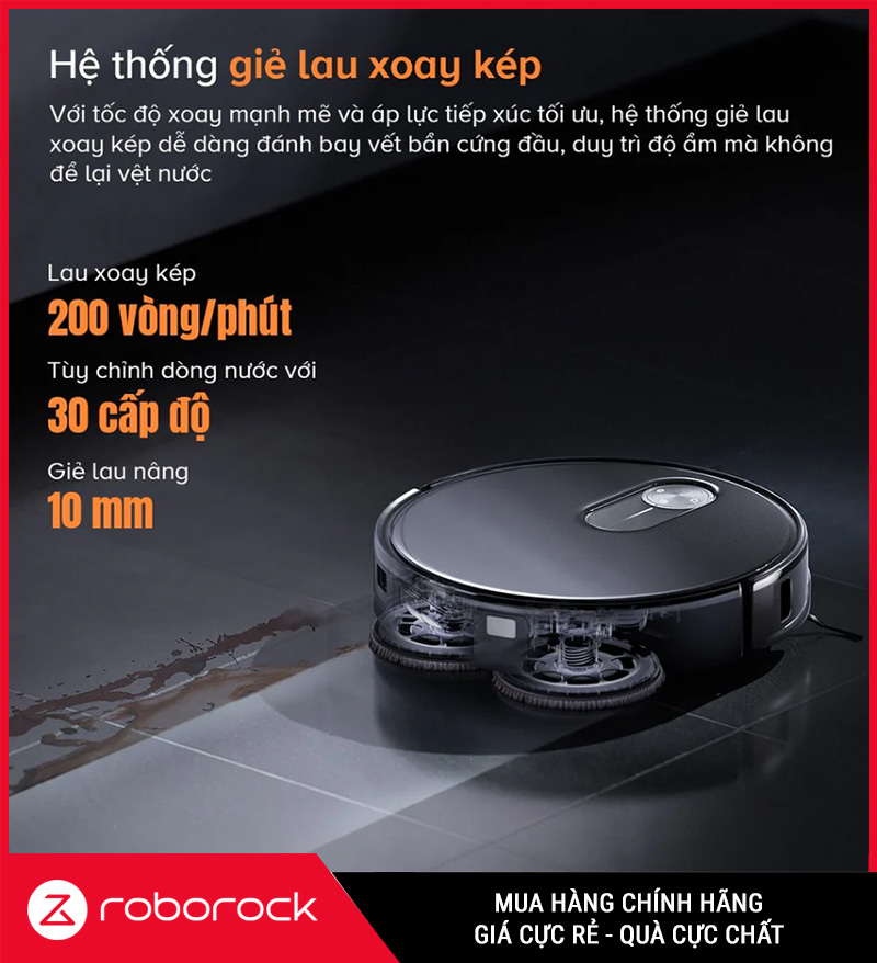 - Công nghệ làm sạch toàn diện, lực hút mạnh, lau xoay kép