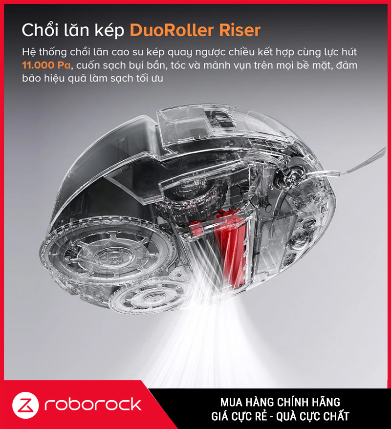 Roborock Q Revo Slim sử dụng hệ thống chổi chính kép DuoRoller Riser™, giúp: