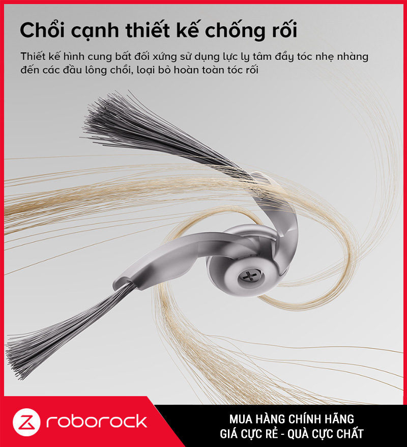 Một trong những nỗi ám ảnh lớn nhất của người dùng robot hút bụi là tóc rối và lông thú cưng quấn vào chổi, gây kẹt động cơ hoặc giảm hiệu suất làm sạch. Roborock QRevo C Pro đã giải quyết triệt để vấn đề này nhờ hệ thống chống rối ba lớp tiên tiến, gồm: