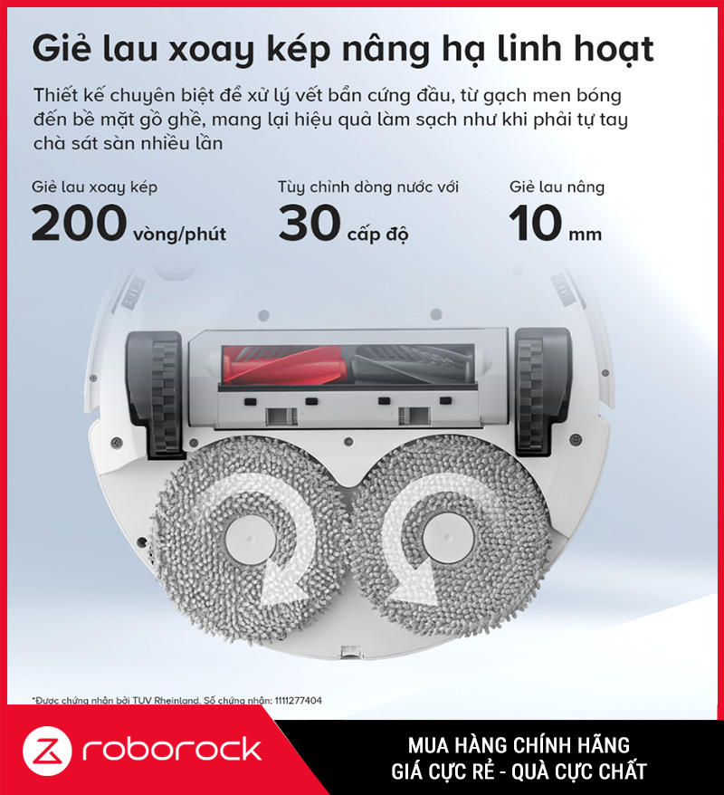 6. Hệ thống lau xoay kép thông minh – Sạch sâu & bảo vệ thảm tối đa