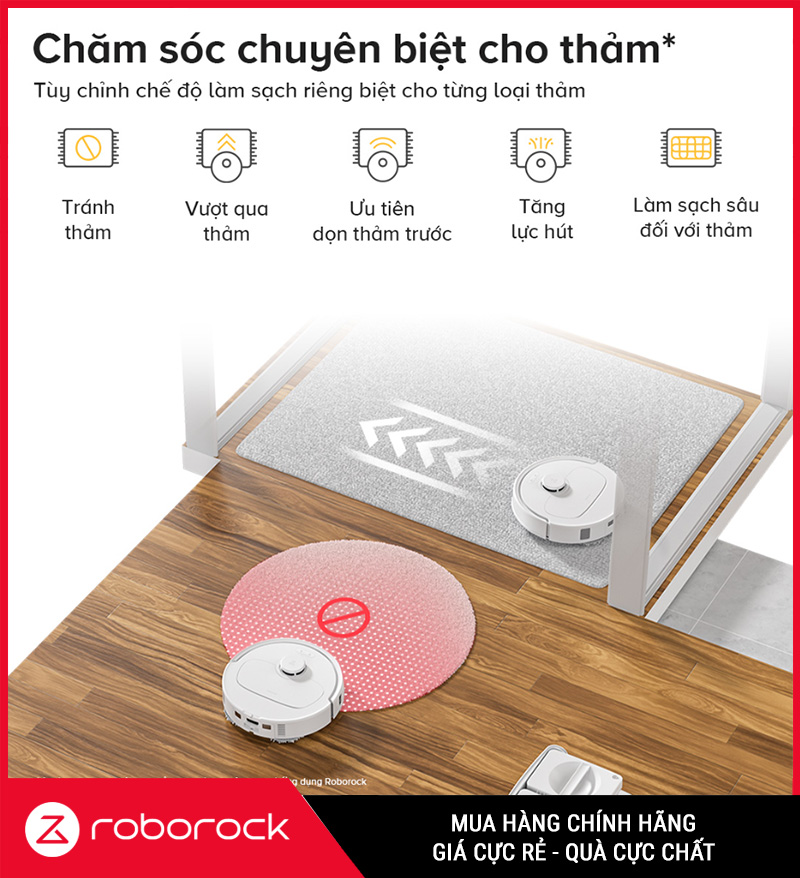Bảo vệ thảm trải sàn, không cần tháo thủ công hay lập vùng cấm lau