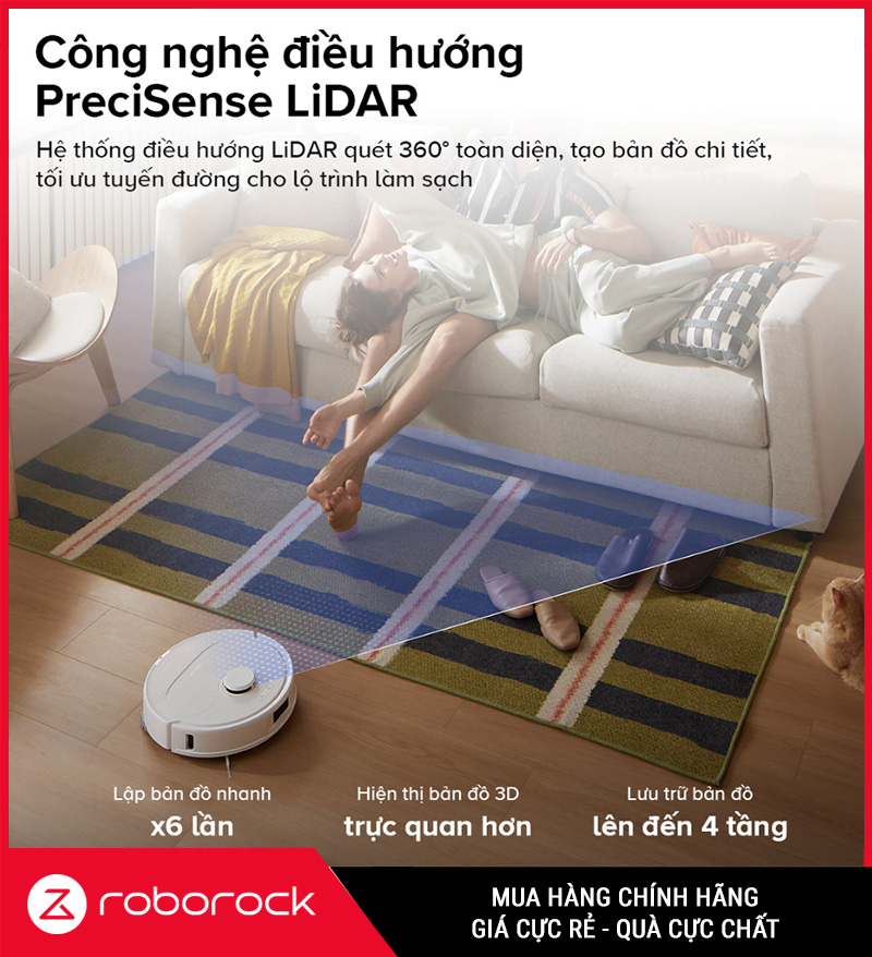 - Điều hướng LiDAR + tránh vật cản Reactive Tech thông minh