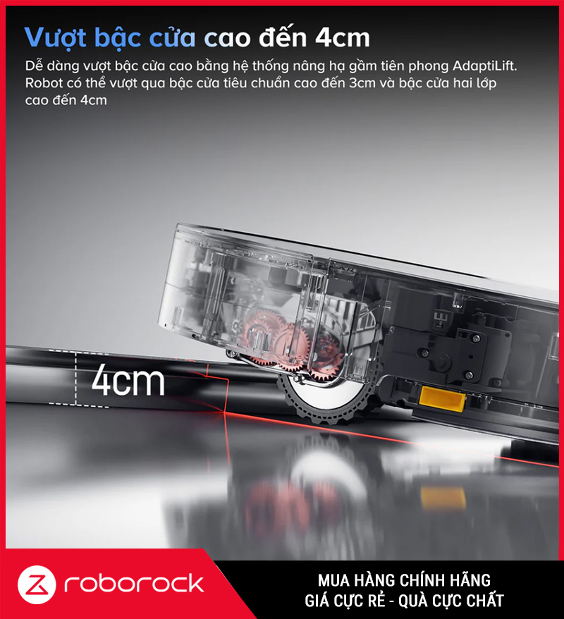 Điểm đặc biệt hơn nữa là khung gầm AdaptiLift™ – cơ chế tự nâng hạ thân máy giúp robot vượt qua ngưỡng cửa, bậc thềm hay thảm dày mà không bị kẹt hoặc “bò chậm như rùa”. Đây là giải pháp lý tưởng cho những ngôi nhà có nhiều loại sàn khác nhau hoặc bố trí nhiều tầng.