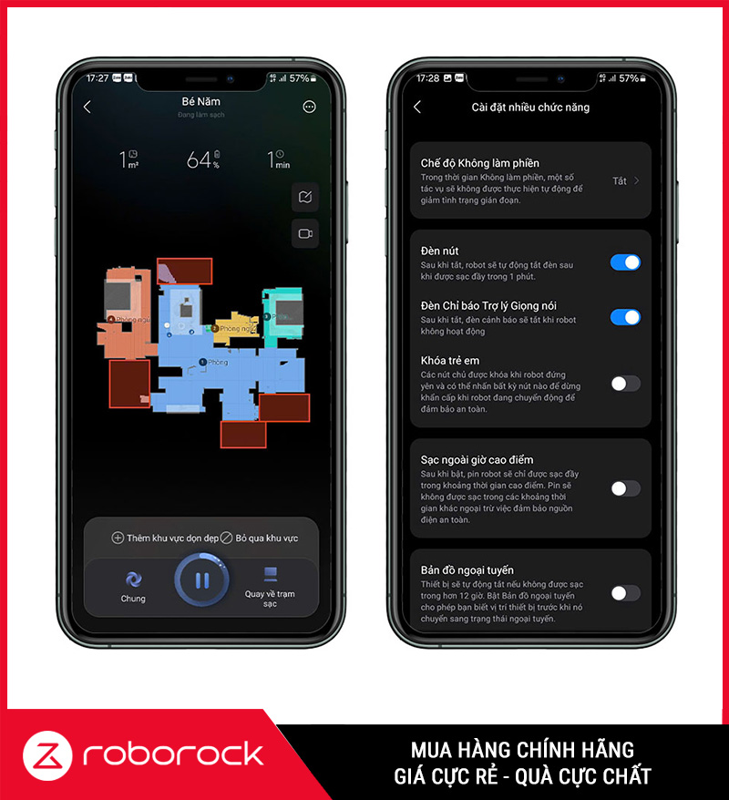 Đặt lịch lau dọn thông minh, chọn phòng, chọn chế độ riêng.