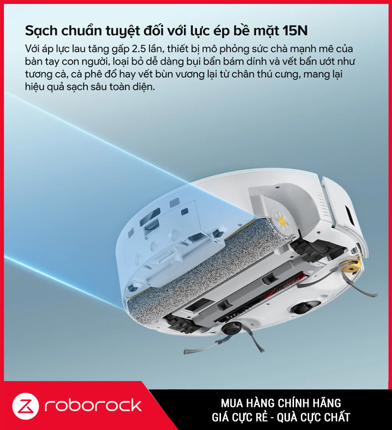 “Không chỉ lau cho có — lực ép mạnh giúp robot lau sạch kiểu ‘đánh bay vết bẩn’.”