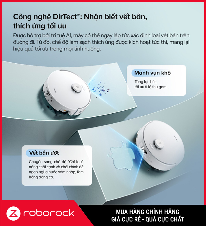 Không phải mọi chỗ trong nhà bẩn như nhau. Tính năng cảm biến giúp robot nhận biết khu vực bẩn hơn để tăng cường làm sạch hoặc lau lại khi cần, thay vì dọn một lượt đồng đều rồi bỏ sót vết bẩn cứng đầu.