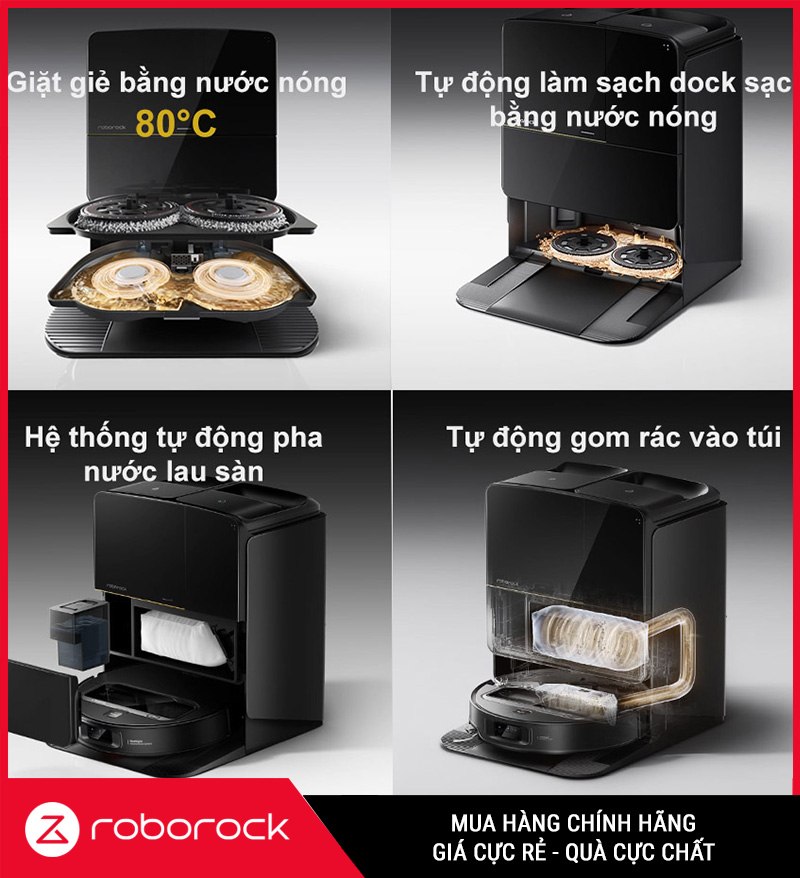 Tự đổ bụi, sấy, bổ sung nước tẩy và nước lau sạch